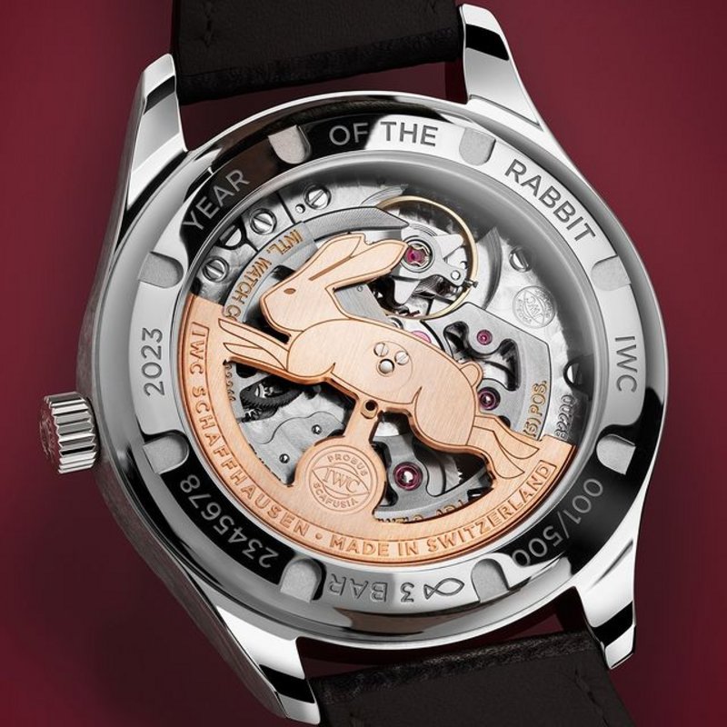 Take a closer look at the IWC-manufactured 82200 calibre through the sapphire glass case back and discover the hidden highlight of this special edition timepiece: the gold-plated rotor in the shape of a rabbit. A stunning reminder of the new year, this detail accentuates the outstanding craftsmanship of #IWCPortugieser Automatic 40 Edition “Chinese New Year” (Ref. IW358315).