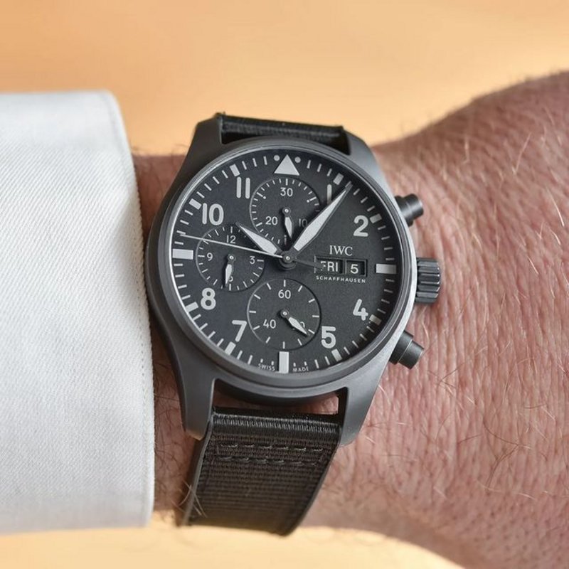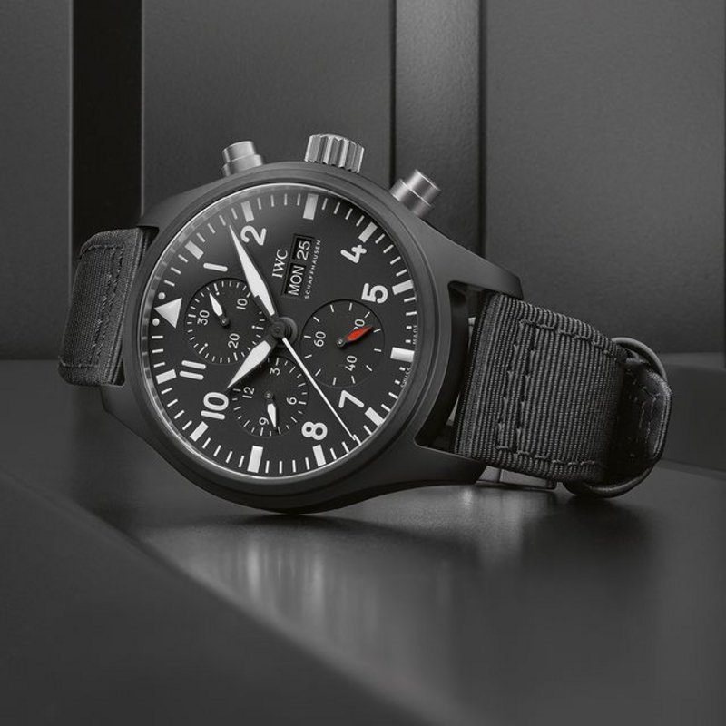 The #IWCPilot's Watch Chronograph Top Gun (Ref. IW389101) is a testament to precision engineering and durability. With its robust, corrosion-resistant materials such as ceramic and titanium, this watch is built to withstand the demands of the US Navy's elite aviators