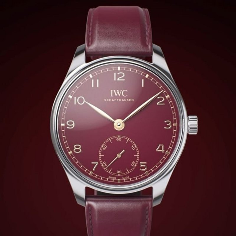 A dial in a striking burgundy hue, gold-plated hands and appliques, and an ergonomic 40-millimetre stainless steel case add to the unique magic of the #IWCPortugieser Automatic 40 Edition “Chinese New Year” (Ref. IW358315)