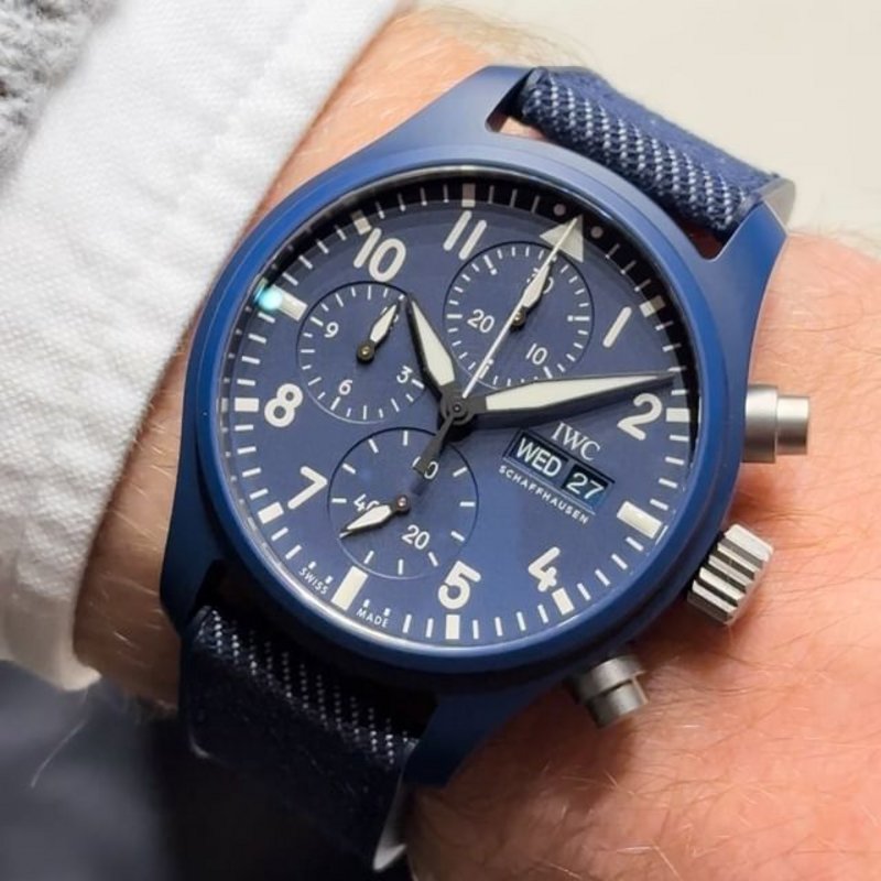 This deep blue @iwcwatches 41mm Pilot’s Watch Chronograph in a ceramic case was quite a pleasant surprise