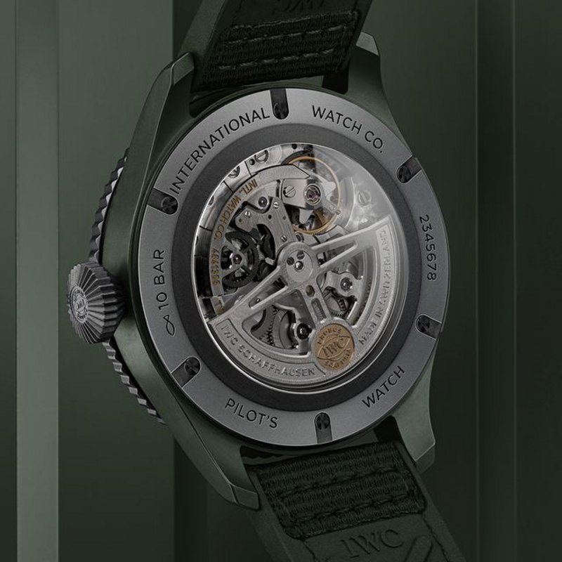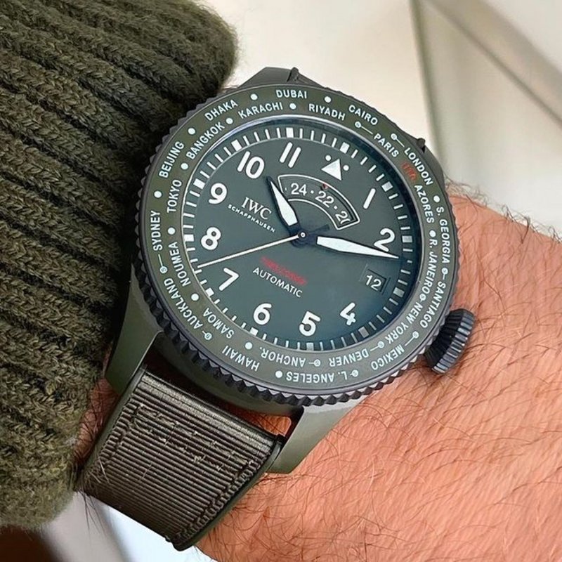 The new IWC Pilot’s Watch Timezoner TOP GUN Woodland, the first Timezoner model produced in coloured ceramic