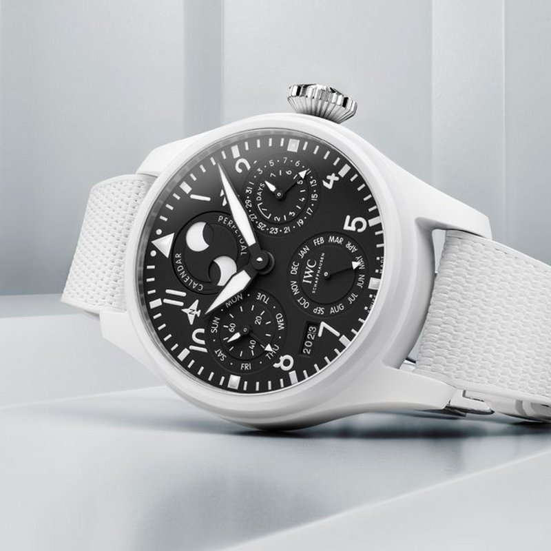 the IWC-manufactured 82760 caliber. This automatic movement uses a Pellaton winding system reinforced with ceramic components to reliably build up a power reserve of 60 hours in the mainspring