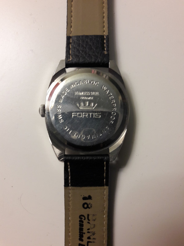 Το κορωνάτο   ;) ''FORTIS'' το έχω πάνω από χρόνο αλλά δεν ασχολήθηκα ποτέ με αυτό, ποτέ δεν το άνοιξα. Σήμερα που ασχολήθηκα λίγο (λόγω θέματος και μόνο) διαπίστωσα οτι έχει κουρδιστή μηχανή άνευ χακινγκ, από δε χρονομετρία έχω μαύρα μεσάνυχτα. Στο  caseback, μεταξύ άλλων ''έγκυρων''  :D  πληροφοριών,  έχει χτυπημένο ένα περήφανο ''SWISS MADE'', το οποίο, λιγότερο περήφανα βέβαια, το έχει γραμμένο και στο καντράν στην γνωστή θέση κάτω από το 6 (ουσιαστικά ίσα που μισοφαίνεται).