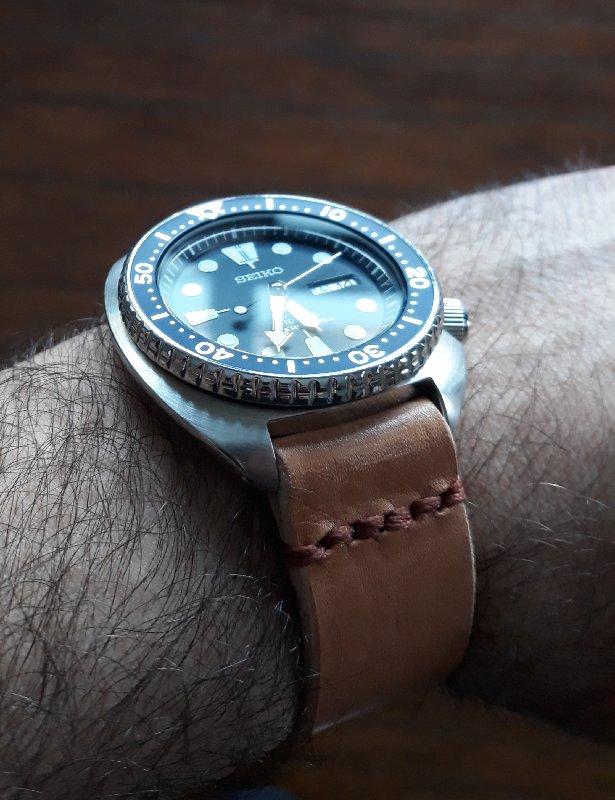 Το duro όντως δείχνει μικρό, όπως θα δείχνει κάθε αντίστοιχο ρολόι σε ένα τέτοιο χοντροκομμένο λουράκι. Ωστόσο, νομίζω έχει να κάνει και με το χρώμα, μιας και με χοντρό σκούρο λουράκι που έχω το duro και με ίδιο τοκά, δεν δείχνει άσχημα.