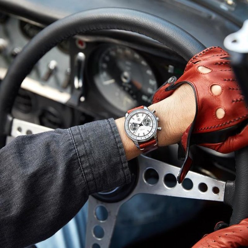 The Vitesse Chronograph harkens back to the timepieces used in motorsports of the 60s. Featuring a bi-compax layout and the La Joux Perret column wheel chrono