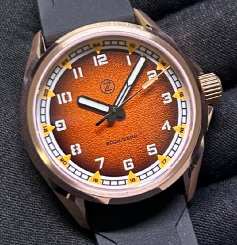 ZELOS WATCHES - SWORDFISH FIELD 38 MM - BRONZE CASE - ORANGE DIAL