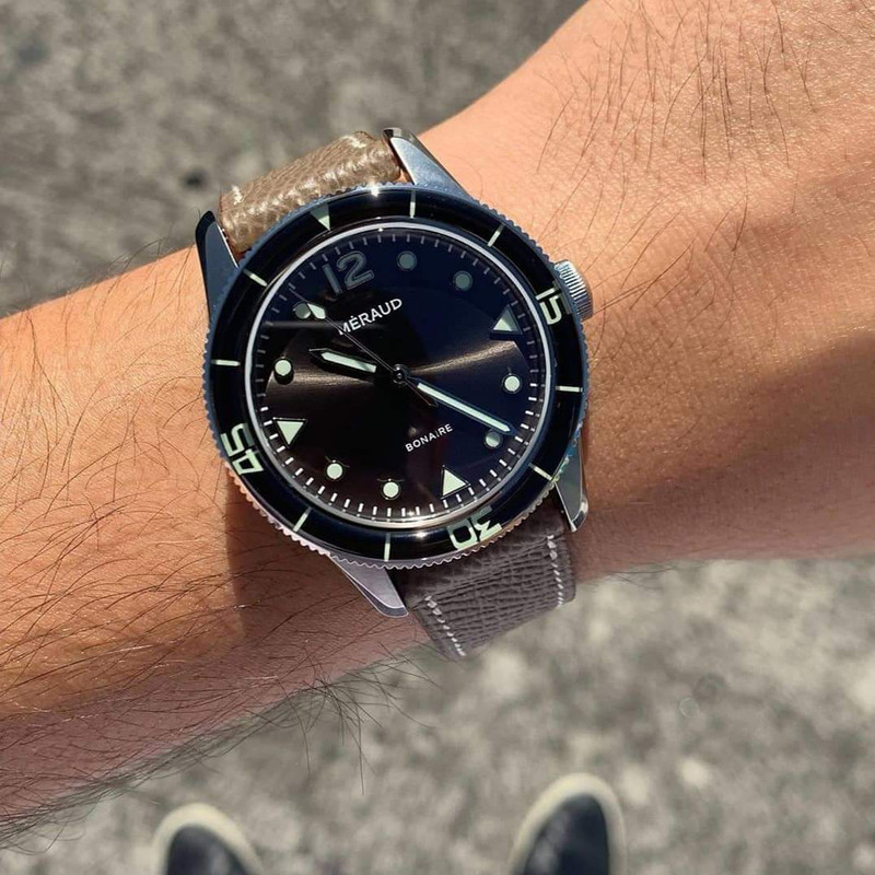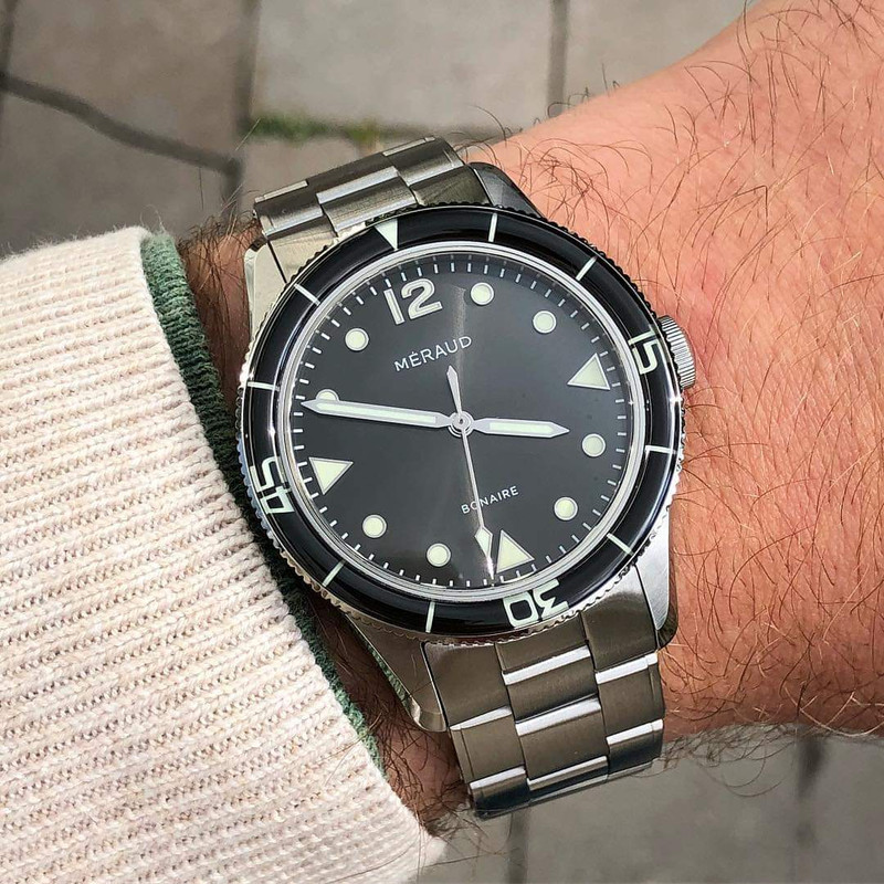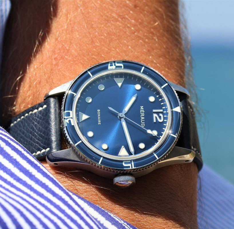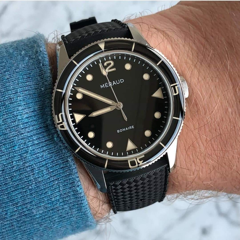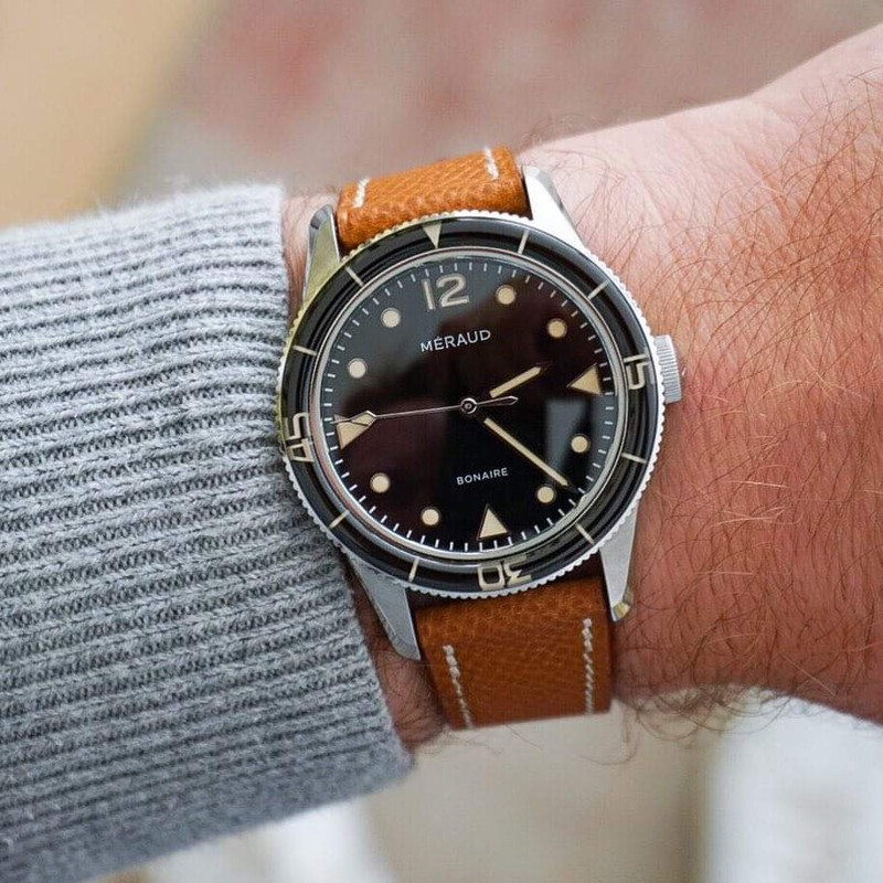 Και τέλος vintage σχεδιασμός και αρκετά elegant για  diver το Bonaire (Swiss STP1-11) της Βελγικής Meraud https://meraud-watches.com/