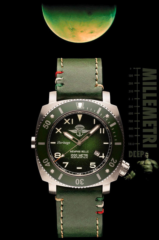 Έπειτα στο στυλ των Panerai submersible το Mille Metri (Eta 2824) από την Ιταλική Memphis Belle http://www.memphisbellewatches.com/