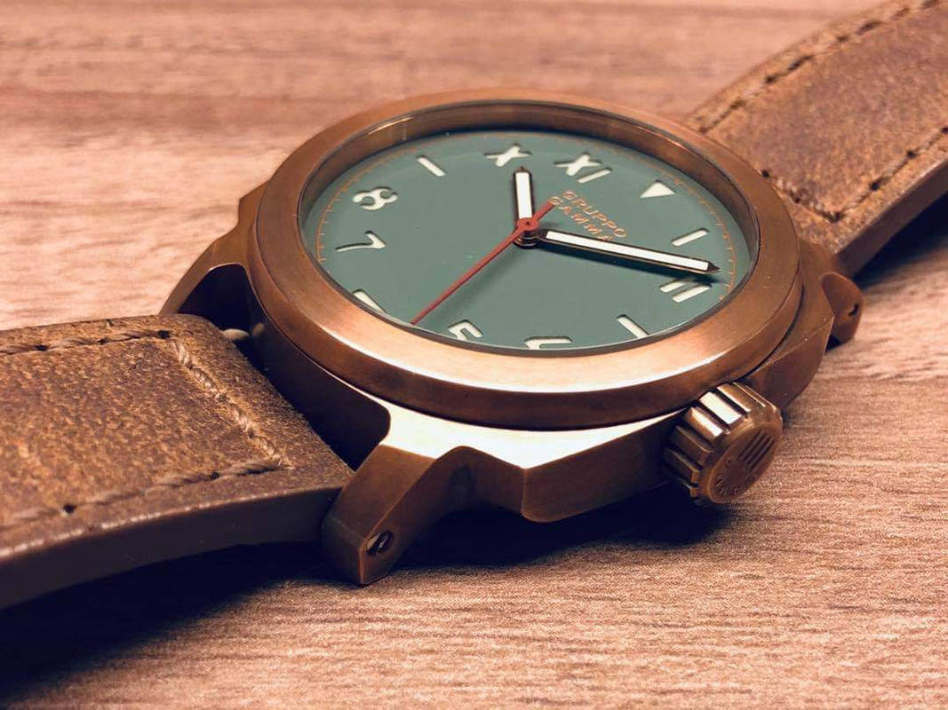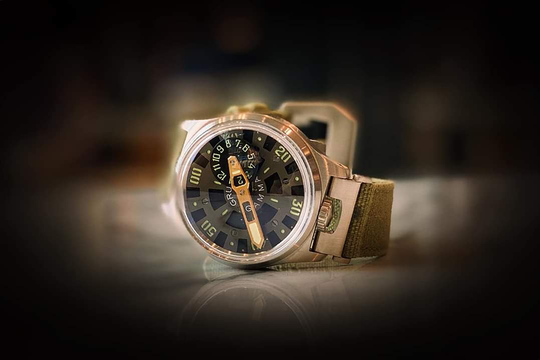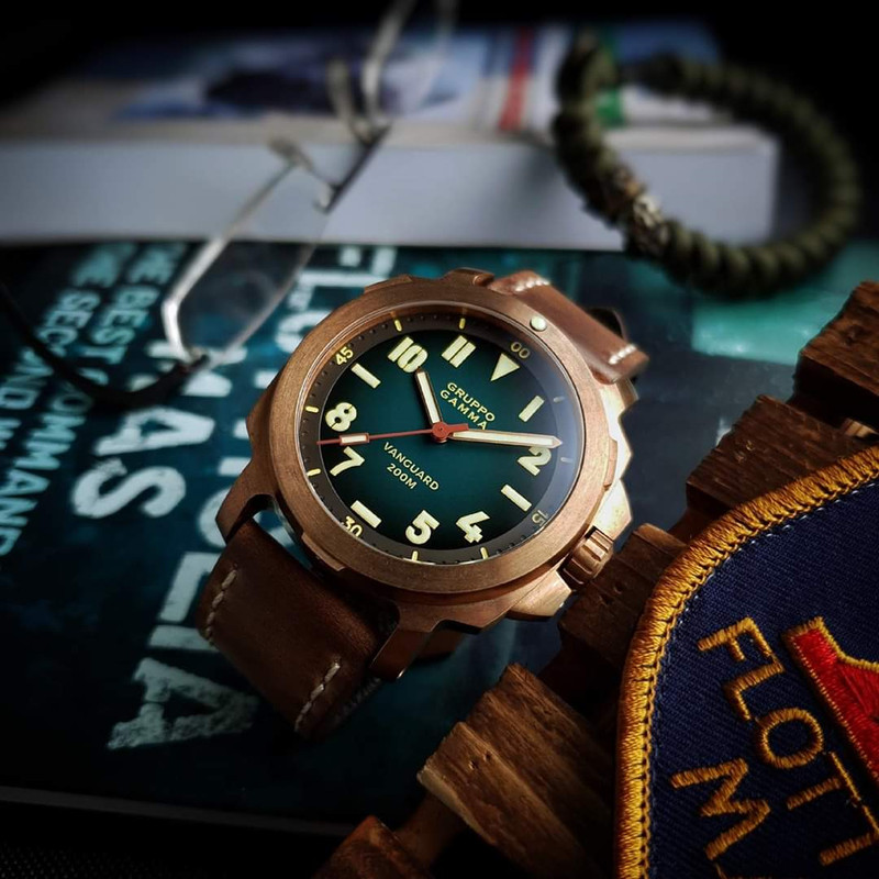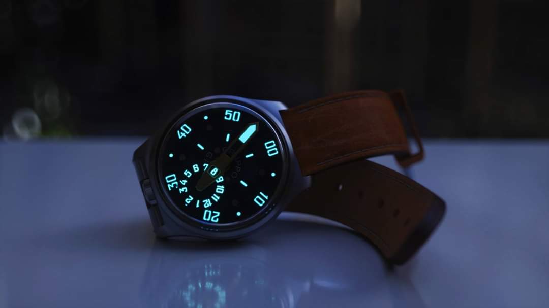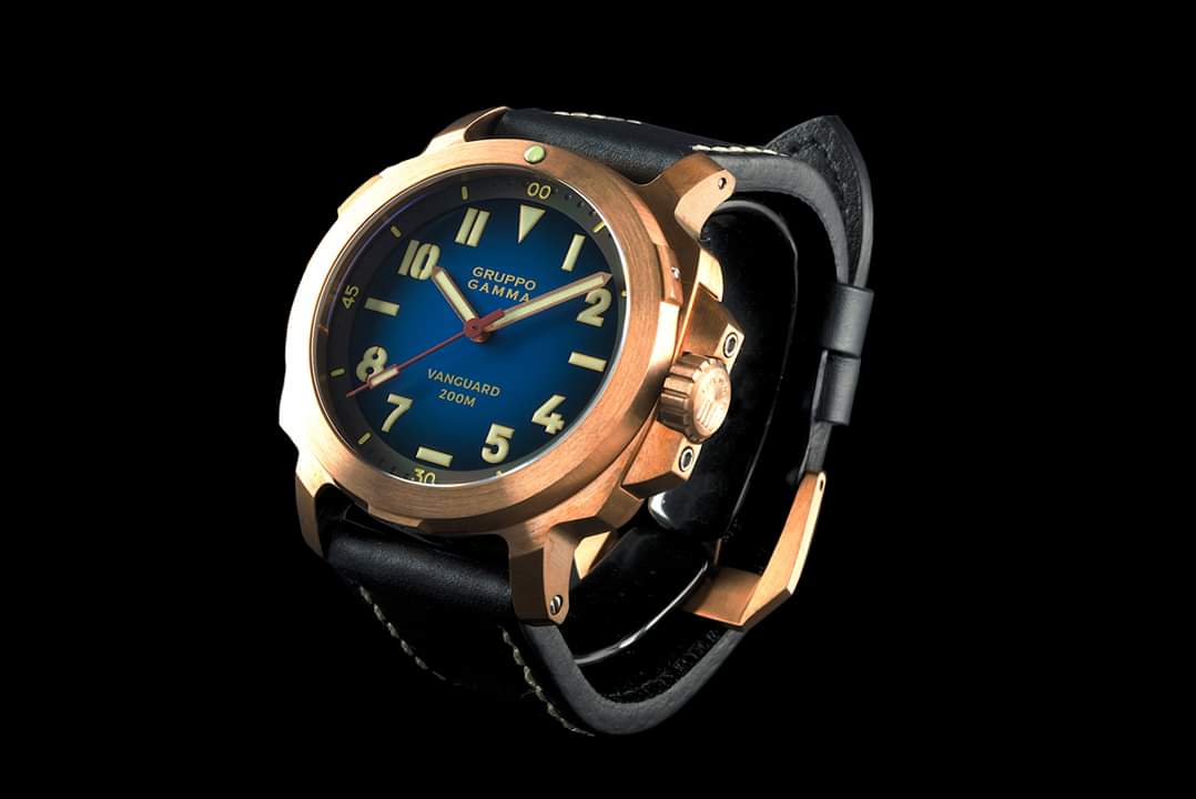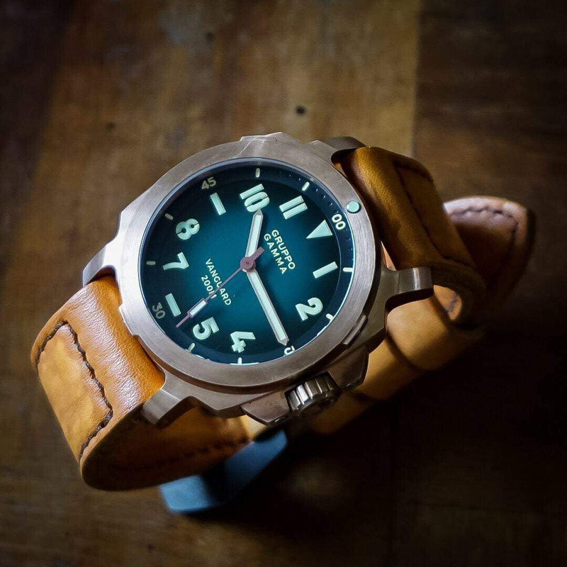 2-tone gradient black sandwich dial, markers filled with Swiss Super-LumiNova vintage color