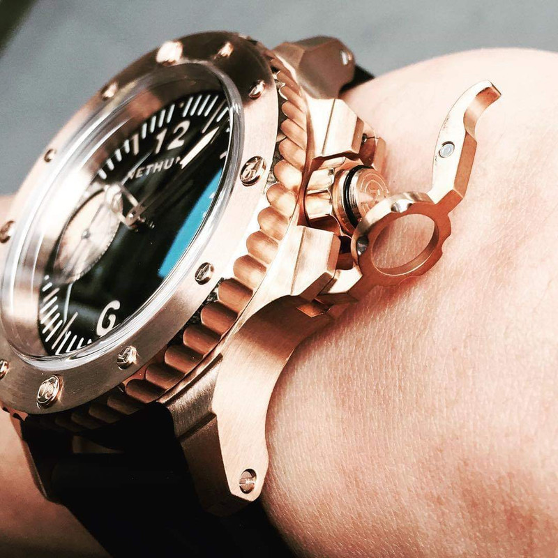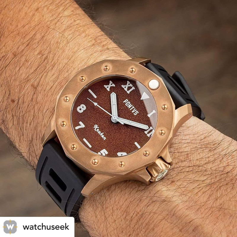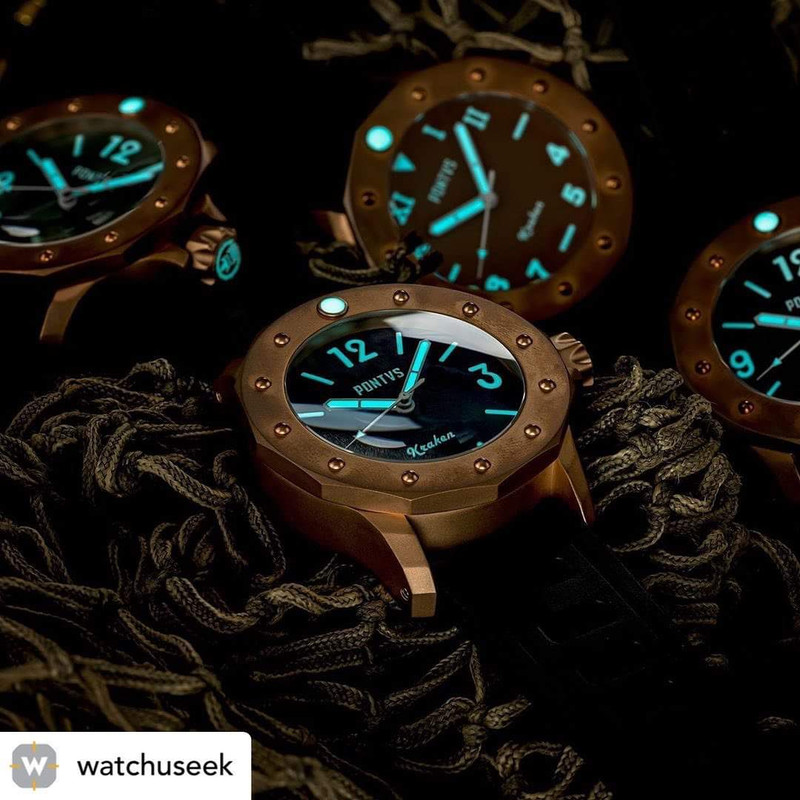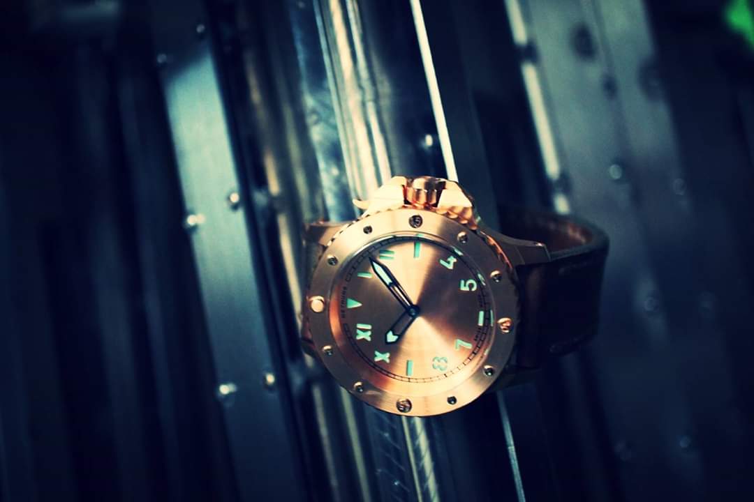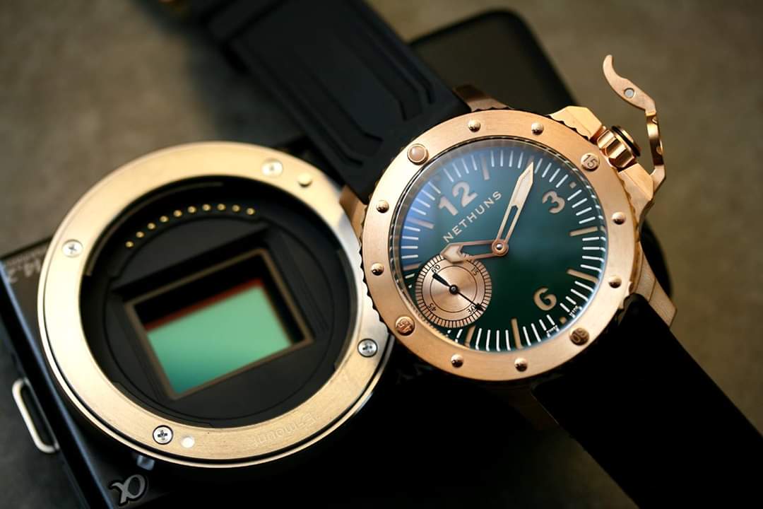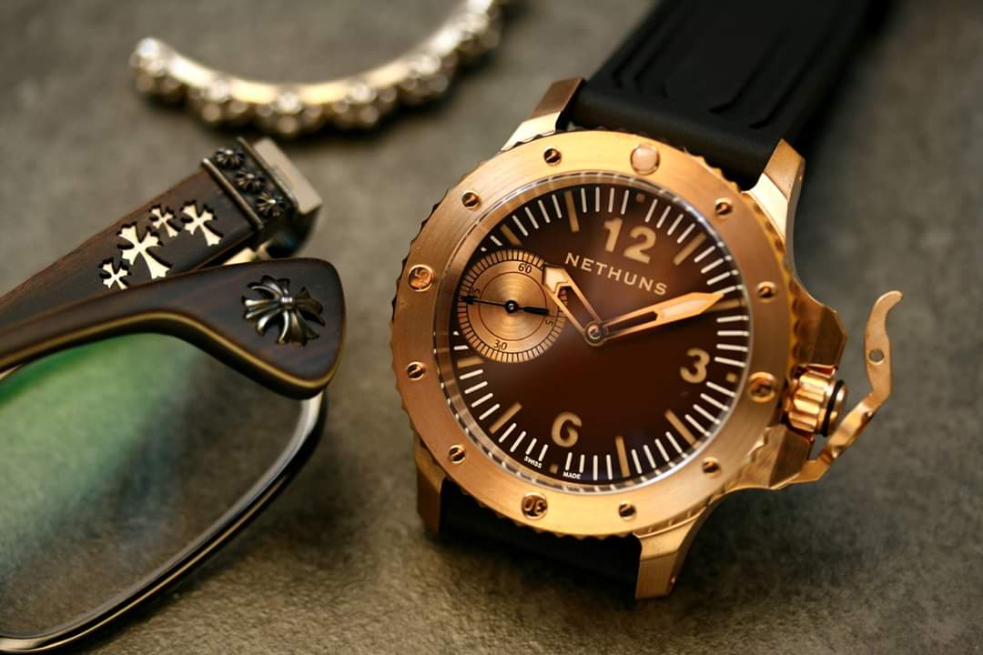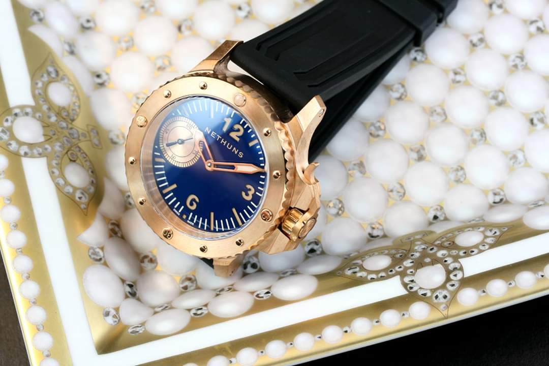 Σε παρόμοιο στυλ, τίμιο στα χρήματα του (750€) με CuSn8 bronze κάσα, κρύσταλλο ζαφείρι, κουρδιστη ΕΤΑ 6497, επιλογή dial σε διάφορα χρώματα, με ή χωρίς subdial, το Nethuns No5