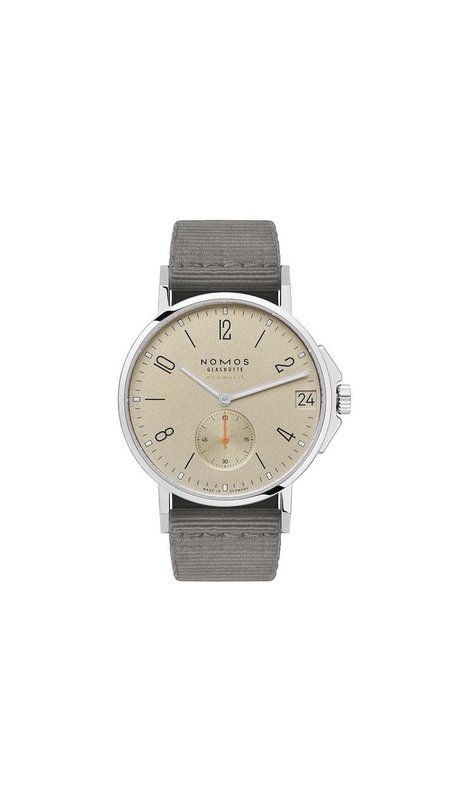 Introducing Ahoi neomatik 38 date in shimmering golden sand. The compact dimensions—38.5 mm in diameter and just 9.9 mm in height