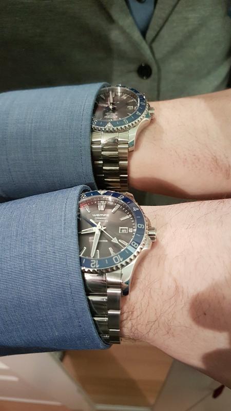 The chronograph is controlled with two pushbuttons located directly next to the side protectors of the crown. The crown is a screw-in version, as is the case back, in order to guarantee water-resistance to 10 bar (100 meters).