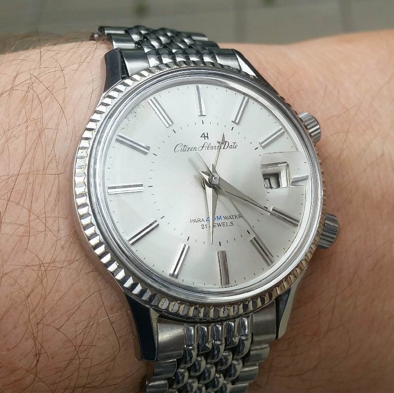 Ένα υπέροχο για εμένα ρολόϊ του 1952. Αυτού του τύπου τα ρολόγια λέγονται triple calendar και είχαν παραχθεί από πολλές φίρμες και μία από αυτές ήταν και η citizen. Ήταν 33άρι κουρδιστό,  με σημερινή τιμή περίπου 1500 ευρώπουλα.