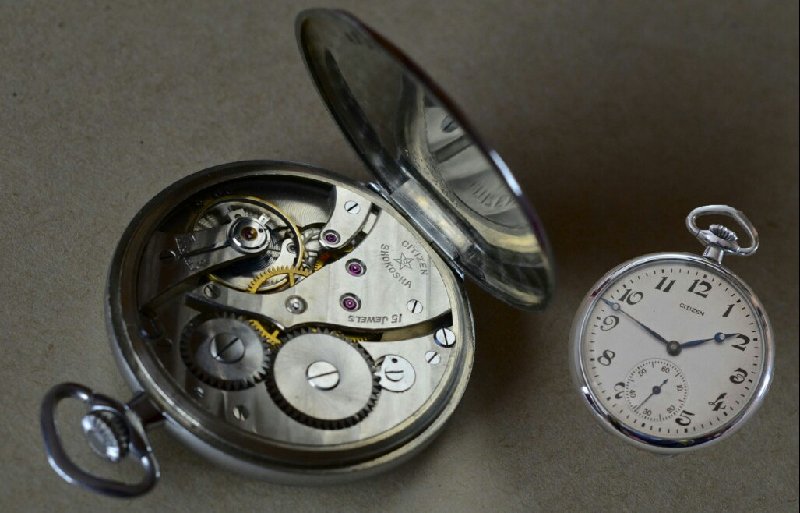 Γύρω στο 1920, η Ιαπωνία είχε πολλά ελβετικά και αμερικανικά ρολόγια, αλλά ένας κοσμηματοπώλης από το Τόκιο είχε τη φιλοδοξία να κατασκευάσει φθηνότερα, υψηλής ποιότητας ιαπωνικά ρολόγια τσέπης. Ίδρυσε το 1918 το Shokosha Watch Research Institute. Το όνομά του είναι Kamekichi Yamazaki . Το 1924 το πρώτο Citizen πωλήθηκε, χρησιμοποιώντας το Citizen caliber 16, με διάμετρο κάσας 40  χιλιοστών και λεπτή για ρολόι τσέπης. Το όνομα Citizen δόθηκε στο ρολόι από τον Δήμαρχο του Τόκιο Shinpei Goto , σύμφωνα με το όνειρό του, ένα ρολόι υψηλής ποιότητας που κάθε πολίτης θα μπορούσε να αγοράσει. Ο αυτοκράτορας της Ιαπωνίας ήταν (πιθανώς) ο πρώτος που είχε αυτό το ρολόι. Το πήρε ως δώρο και τον εντυπωσίασε πολύ. Αγαπούσε το στυλ και την ποιότητα που βίωσε με αυτό το ρολόι τσέπης από την Ιαπωνία. Έτσι γεννήθηκε μια από τις μεγαλύτερες εταιρείες ρολογιών παγκοσμίως, η citizen.