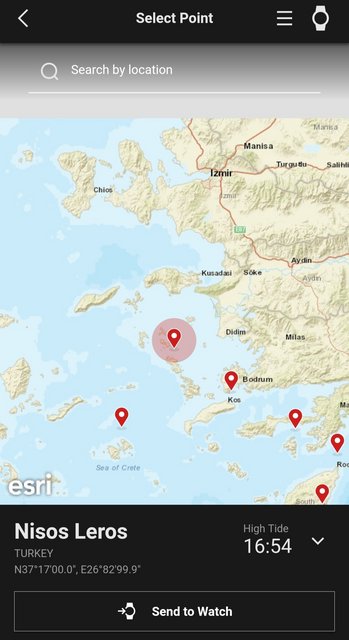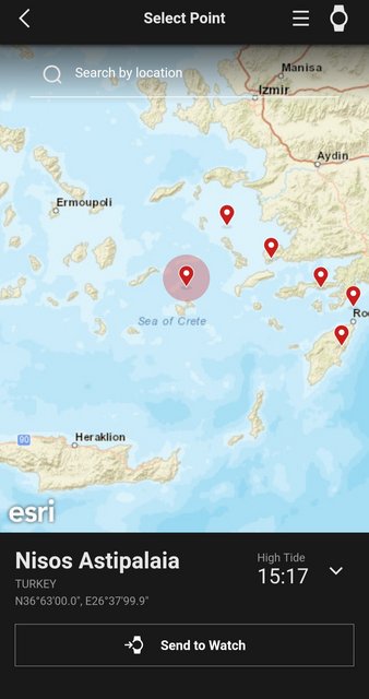 Ωστόσο μετά λύπης μου, διαπίστωσα κάτι το οποίο με στεναχώρησε. Το συγκεκριμένο σου φέρνει data και για ύψος κυμάτων σε κάποιες παραλίες (φυσικά και άχρηστο για μένα), αλλά σε κάθε περίπτωση επιλέγεις κάποιες προκαθορισμένες τοποθεσίες της Casio για τις οποίες παίρνεις πληροφορίες. Η Ελλάδα είναι η μοναδική χώρα που δεν υπάρχει. Ούτε σε Ευρώπη. Ψάχνοντας λίγο παραπάνω είδα ότι υπάρχουν 5-6 τοποθεσίες με σημαιάκι, που όμως δεν υπάγονται στην Ελλάδα.