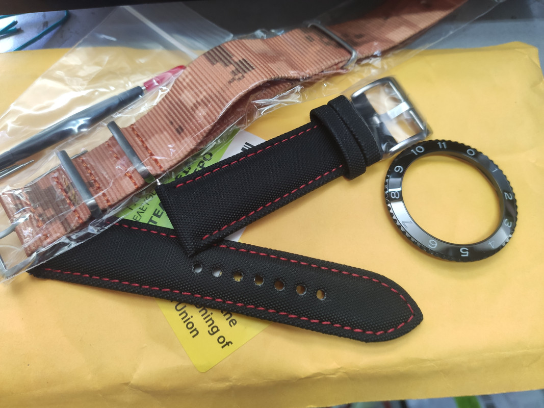 Ένα bezel με ceramic insert και ένα νατο από komandirskie.com. To νατο είναι της πλάκας αλλά ήταν φτηνό και λέω αφου θα πάρω το μπεζελ ας το χτυπήσω.