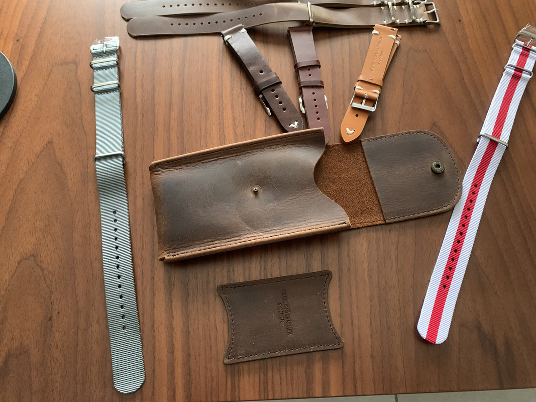 Για κάποιο λόγο που δε μπορώ να θυμηθώ, έχω παραγγείλει 2 δερμάτινα Nato στα 20mm. Μάλλον ήθελα το ένα στα 22mm και έκανα λάθος. Βέβαια το ένα από τα 2 έχει μια βαθιά χαρακιά από τη μέσα πλευρά... Λίγη βενζινόκολλα και βλέπουμε, δε νομίζω να ασχοληθώ περισσότερο...