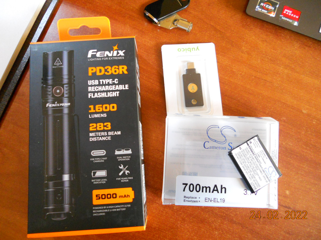 Φακός, παπούτσια (made in Albania), δεύτερη μπαταρία για την (αρχαία) φωτ. μηχανή.