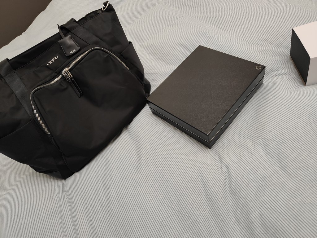 Με τούτα και με τ'άλλα λοιπόν εγώ ανοικτός σε όλα όπως πάντα (έπεσε στον νούμερο ένα shopaholic το παιδί), κανονίζουμε ραντεβού νωρίτερα απόψε. Φέρνει ένα weekend bag Tumi και τρία Α5 μέγεθος pouches MB όλα με φερμουάρ.