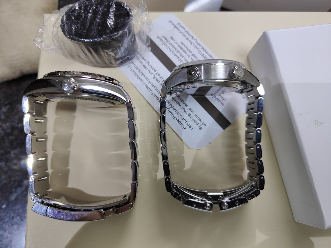 Να πω κιόλας ότι τα ζύγισα - είναι 148 γραμμάρια το Ζεζε (με 2 links να έχουν αφαιρεθεί) και 29 γραμμάρια παραπάνω το Sky-Dweller, δηλαδή 177 γραμμάρια βάρος, με ένα link να έχει αφαιρεθεί.