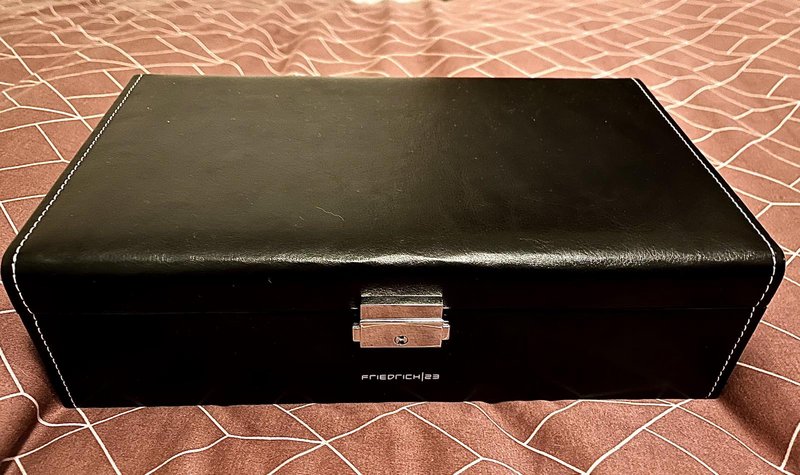 Friedrich23. Θήκη 10 ρολογιών με δερματίνη εξωτερικά, πολύ ποιοτική κατασκευή για τα λεφτά της. Καμία σχέση με αντίστοιχες από Skroutzομάγαζα.
