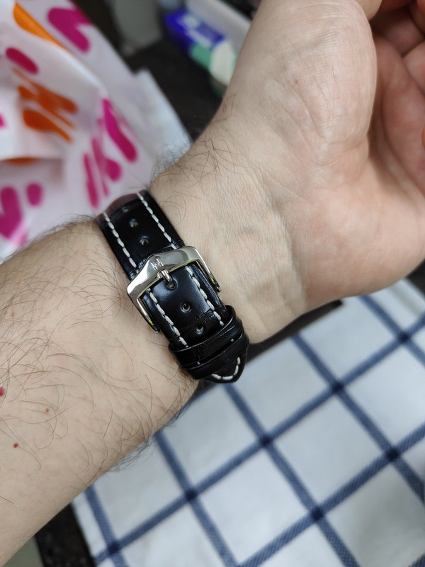 Το μπλε είναι η προσπάθειά μου να έχω και κάτι που θα ταιριάζει (υποτίθεται) σε ρολόϊ τύπου 'πιλότο', που είναι τούτο 'δω το ρολόϊ. Ποιοτικά το μπλε θα μπορούσε να είναι ακόμη καλύτερο. Ίσως κάτι σε μαύρο και λίγο πιό λεπτό να ήταν πιό ταιριαστό (αν και θα έκανε το ρολόϊ πιό dressy).
