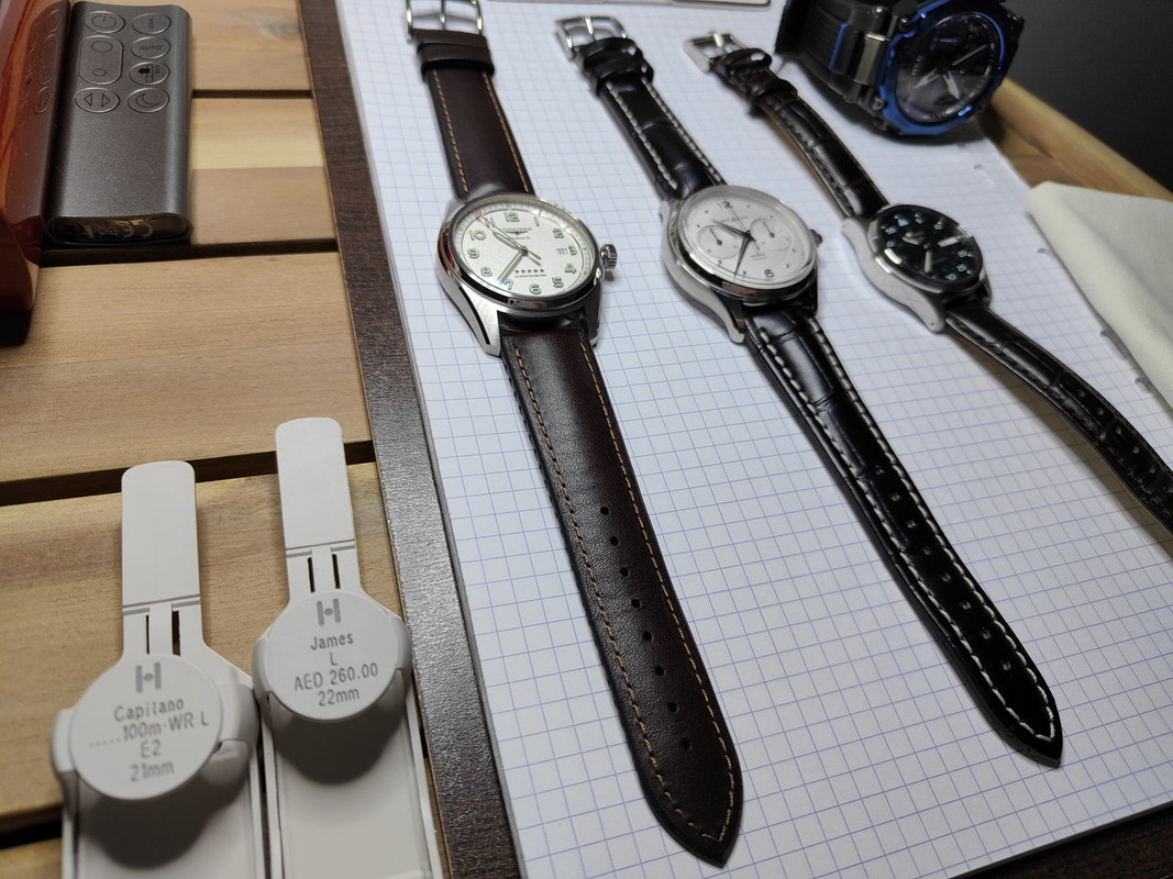 Έδωσα πίσω και τα τρία τα λουριά που είχα πάρει χθες, είδε ό,τι υπήρχε και δεν υπήρχε σε 22mm και 21mm, και τελικά πήρα ένα λουρί για το ΜΒ (που είναι δύσκολο στα 21mm) κι ένα James 22-άρι για το Longines, που είναι και ελαφρύ λουρί και δοκιμασμένο, κι είναι και καουτσούκ από κάτω.