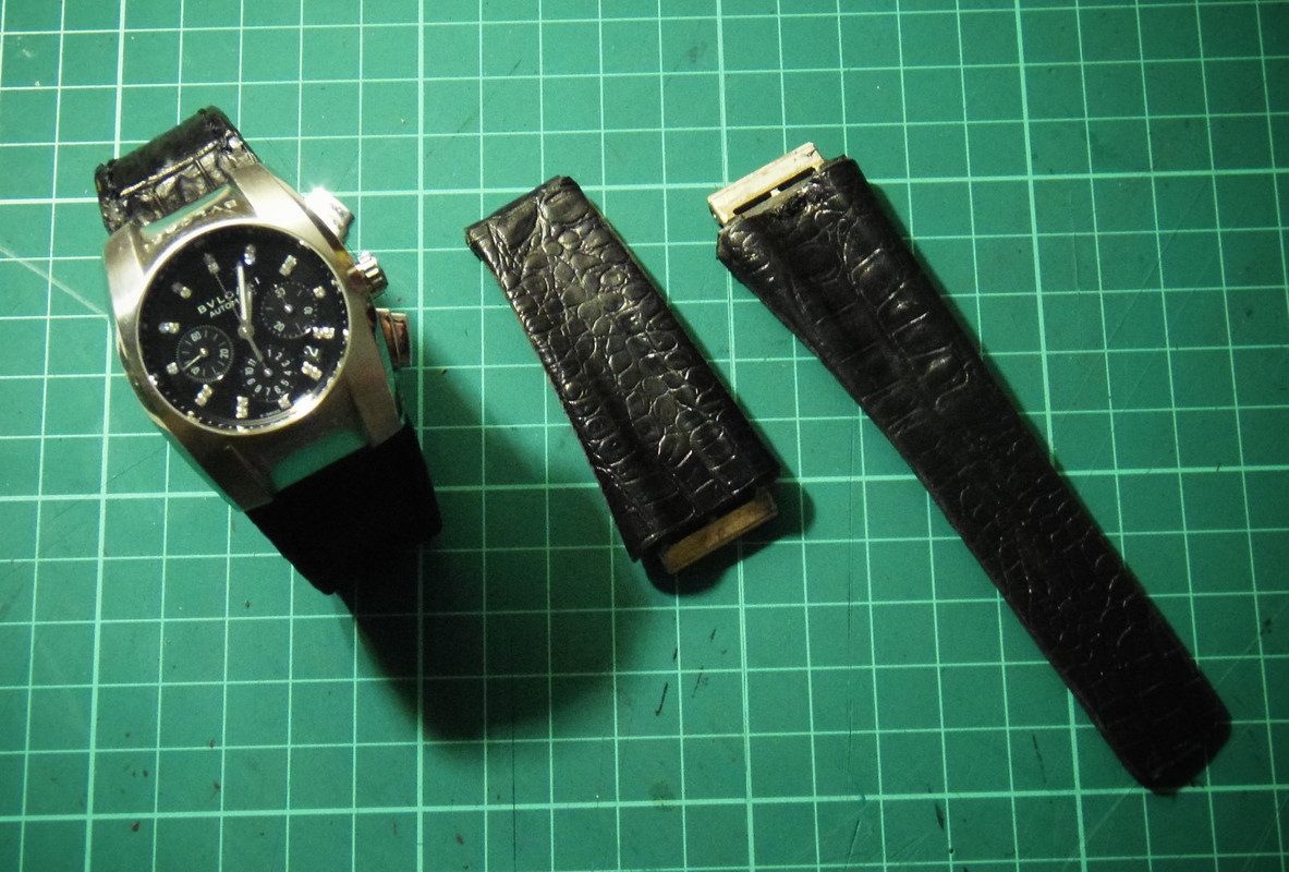 σε αυτο το   bulgari  για την γυναικα ενος  φιλου  της ειχε  ξεκολησει  το μεταλλικο μερος απο το συλικονουχο  μερος απο το εσωτερικο του λουριου  .το  εγδυσα   και το ξανα εφτιαξα απο την αρχη αλλα δυστηχως   οταν κατι ειναι φιξ   και σπασμενο  μερικες φορες δεν φτιαχνετα.ι Ετσι  εφτιαξα απο την αρχη με βαση το πρωτο λουρι ενα καινουργιο  ιδιο με το παλιο χωρις τα μεταλλικα μερη που κρατουν τον πυρο  ασφαλειας  μιας και ο πυρος ηταν με αλλεν δεν υπηρχε προβλημα