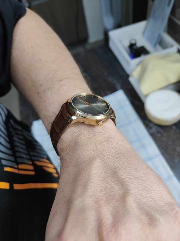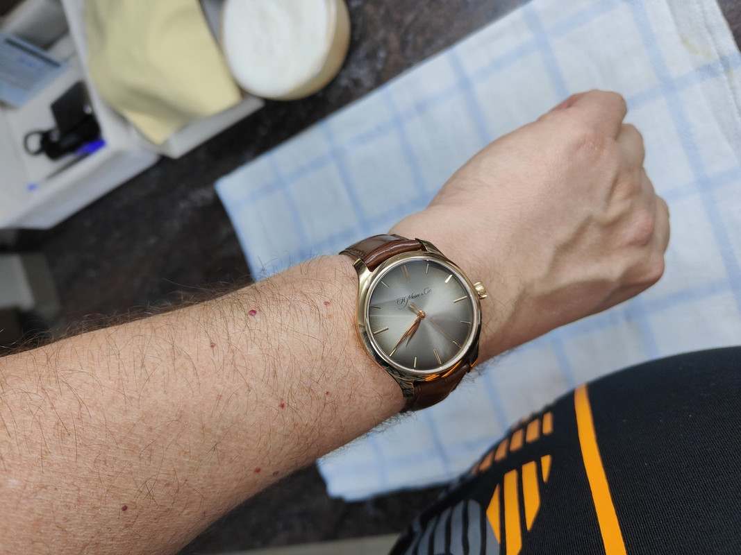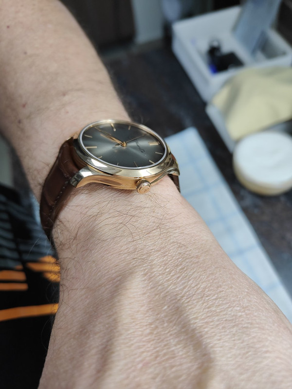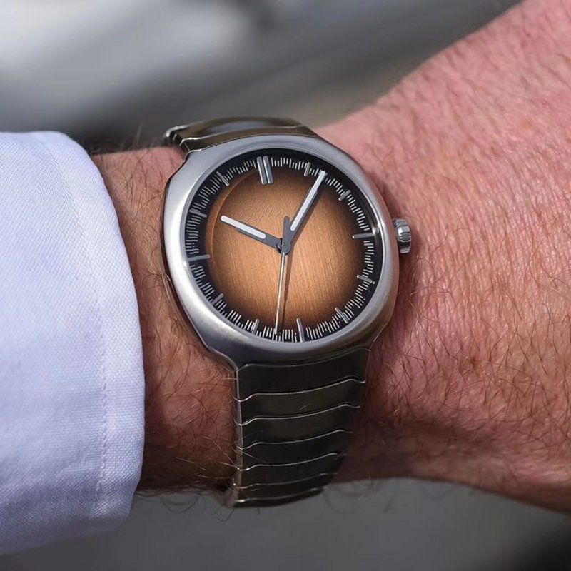 H κάσα είναι στο πλάϊ με σχεδιαστικούς τόνους γλυπτικής, και το Fumé dial είναι πραγματικά πανέμορφο - γκρι ελαφρώς με αποχρώσεις καφέ.