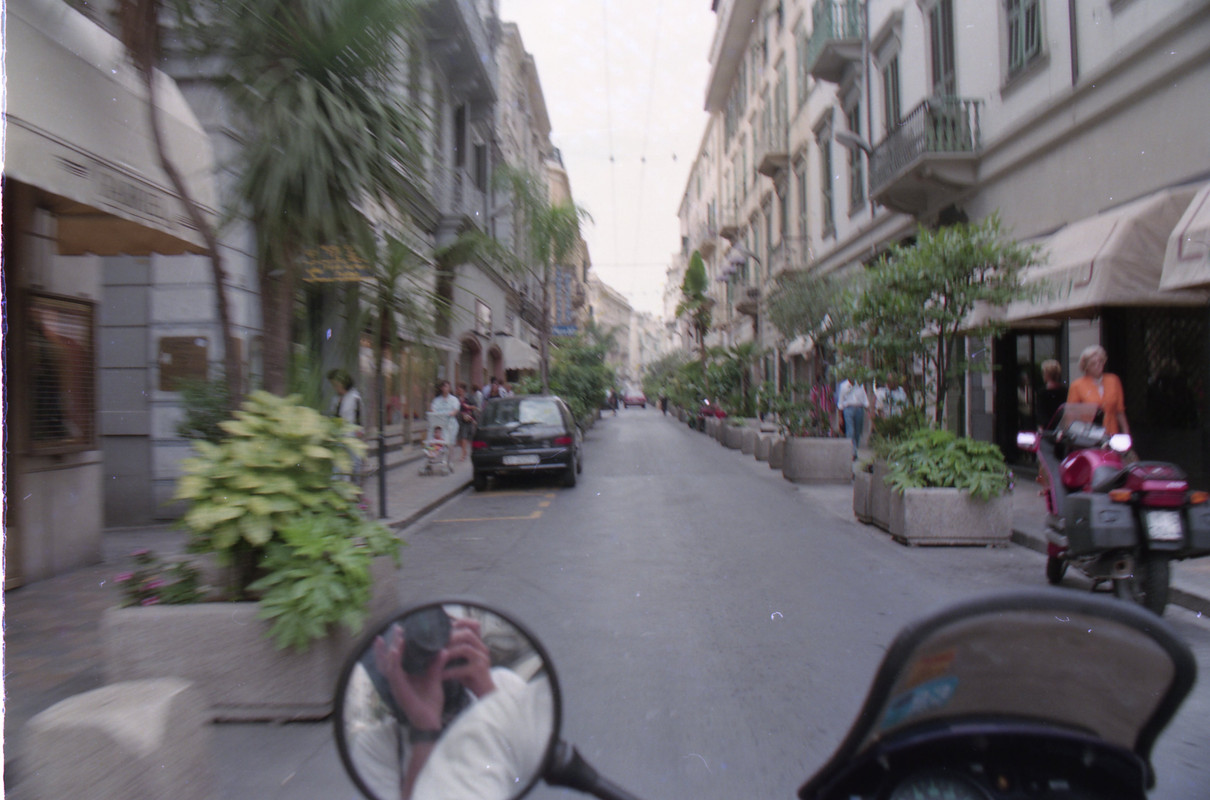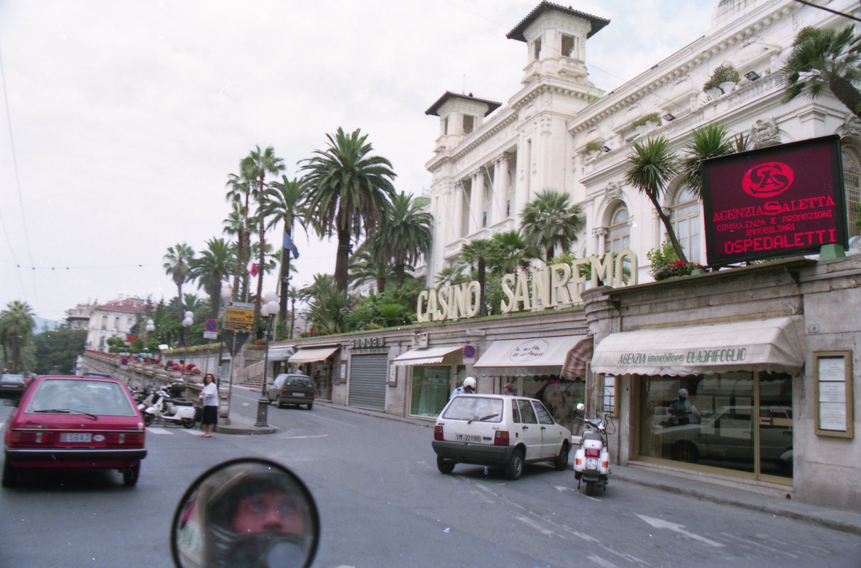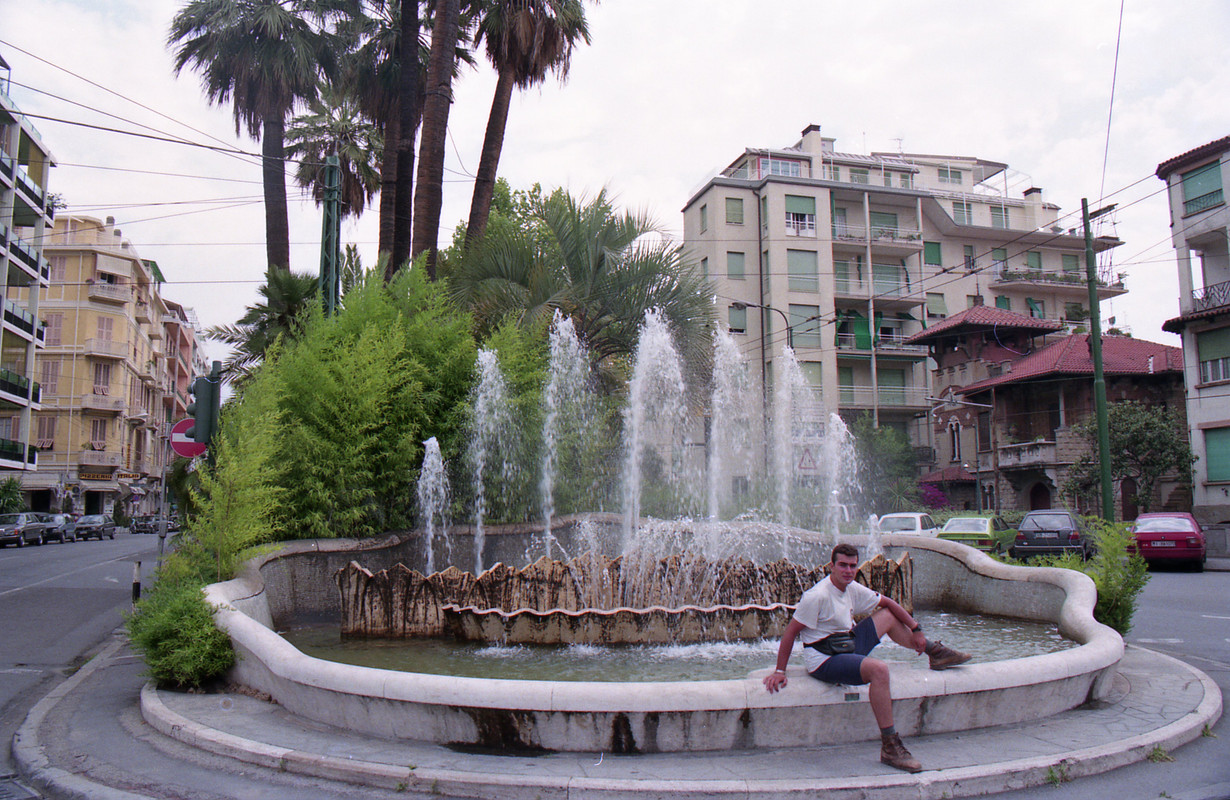 Πολύ κυριλέ πόλη το Σαν Ρέμο. Αυτό που μου έκανε εντύπωση σε σχέση με τις υπόλοιπες περιοχές τις Ιταλίας ήταν πως ελάχιστοι μοτοσικλετιστές φορούσαν κράνος, παρά το γεγονός ότι η παρουσία των Καραμπινιέρη ήταν έντονη. Σταματήσαμε να φωτογραφήσουμε ένα όμορφο σιντριβάνι που ήταν στο δρόμο μας προς το κέντρο και να πάρουμε τηλέφωνο στους δικούς μας.