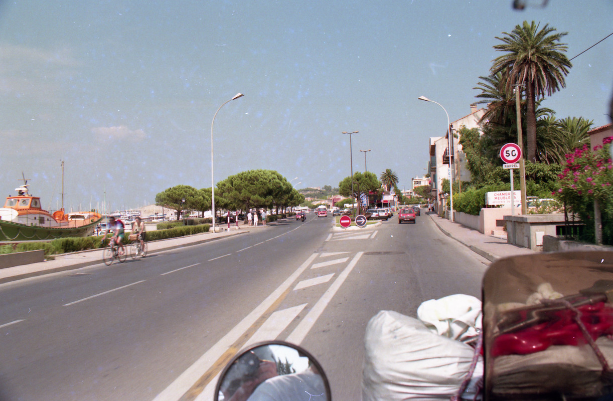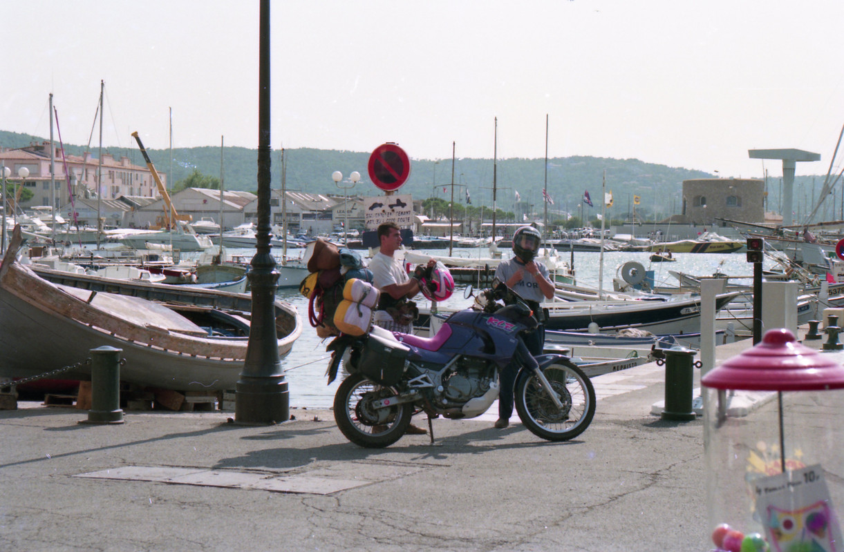 Μετά από 120 χλμ οδήγησης στη Γαλλική Ριβιέρα μπαίναμε στο γεμάτο χλιδή και κοσμική ζωή Σαν Τροπέ. Εδώ η Χάρλεϊ Ντάβινσον είχαν τη τιμητική τους και το κράνος ήταν -όντως αυτή τη φορά- μια παρακμιακή ιδέα, αφού το συγκεκριμένο είδος δεν επιτρέπει να ανεμίζει το υπέροχο μαλλί του οδηγού του. Δε θα ξεχάσω τον μάλλον Γαλλο-Αφρικανικής καταγωγής σκουρόχρωμο ιδιοκτήτη με το κατάξανθο μακρύ και πλεκτό μαλλί και το γυαλί ηλίου τύπου καθρέπτης.