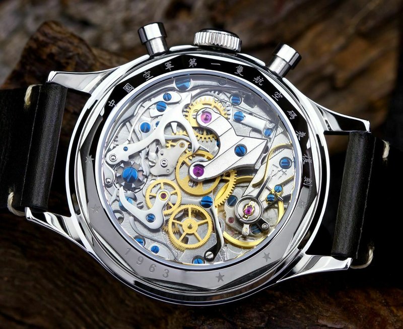 Από πίσω το καπάκι είναι βιδωτό, σχηματίζει ένα δεκάπλευρο για να βοηθάει στο άνοιγμά του. Περιμετρικά βρίσκουμε πάλι κινέζικα , το 1963 και το 3ΑΤΜ. Κεντρικά είναι το άνοιγμα γιά την θέα του μηχανισμού. Υπάρχει έκδοση με κλειστό καπάκι.