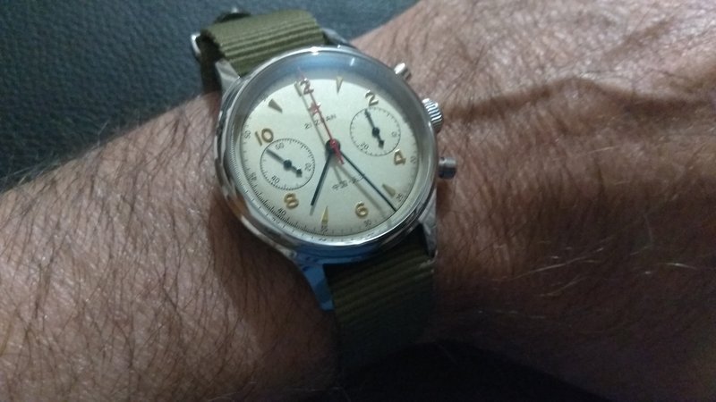 Παρέλαβα εχθές απο ελ.τα. (δεν πέρασε τελωνείο) και η πρώτη μου δουλειά ήταν να το ανοίξω να δω αν ευθυγραμίζουν οι δείκτες.... και ΩΧ! Ψυχρολουσία, κρύος ιδρώτας, κομένα γόνατα, τρεμάμενα χέρια( εντάξει τα δραματοποιώ). Ο κόκκινος δείκτης των δευτερολέπτων του χρονογράφου στο μείον ένα δευτερόλεπτο από το κέντρο και ο δεξιά δείκτης των λεπτών του χρονογράφου στο +2. Οπλίζομαι με θάρος πατάω τα πουσουάρ και εγένετο φως. Όλα κεντράρισαν. Ξανα στο κουτί, μεταφορά στο σπίτι και αρχίζει σχολαστική επεργασία. Όλα τέλεια κεντραρισμένα και συμμετρικά (τα ακούς seiko;)