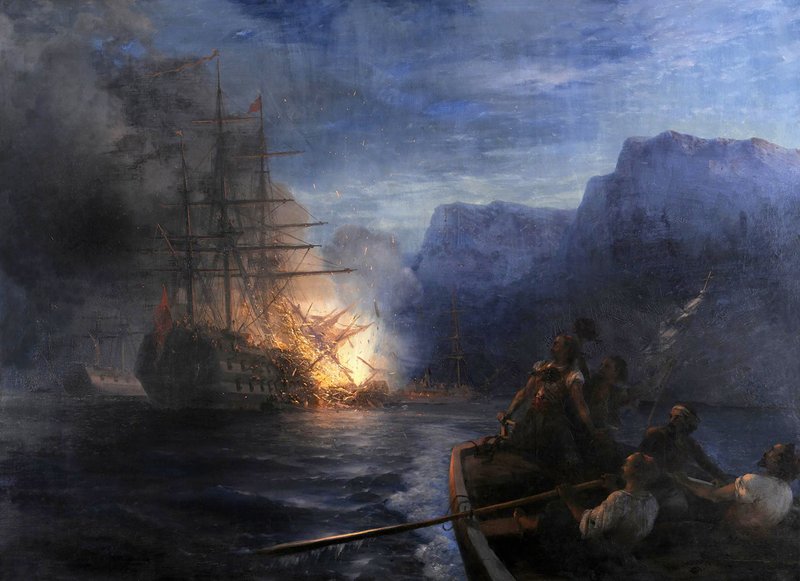 The Burning of the Turkish Flagship by Konstantinos Kanaris