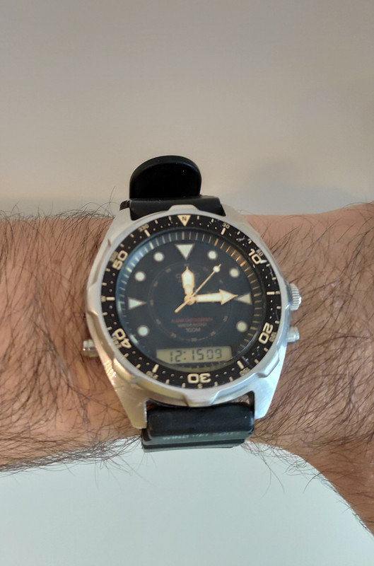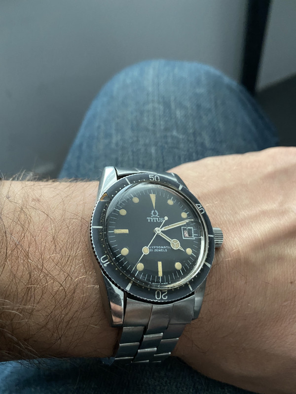 πριν καμια βδομαδα ομως ηρθε ενα ρολοι που εψαχνα χρονια ενα απο τα 3 τοπ diver στην λιστα μου για τα ματια σας μονο titus calypsomatic 7986 guilt dial ολο οριτζιναλ κ απειραχτο με το οριτζιναλ μπρασελε του