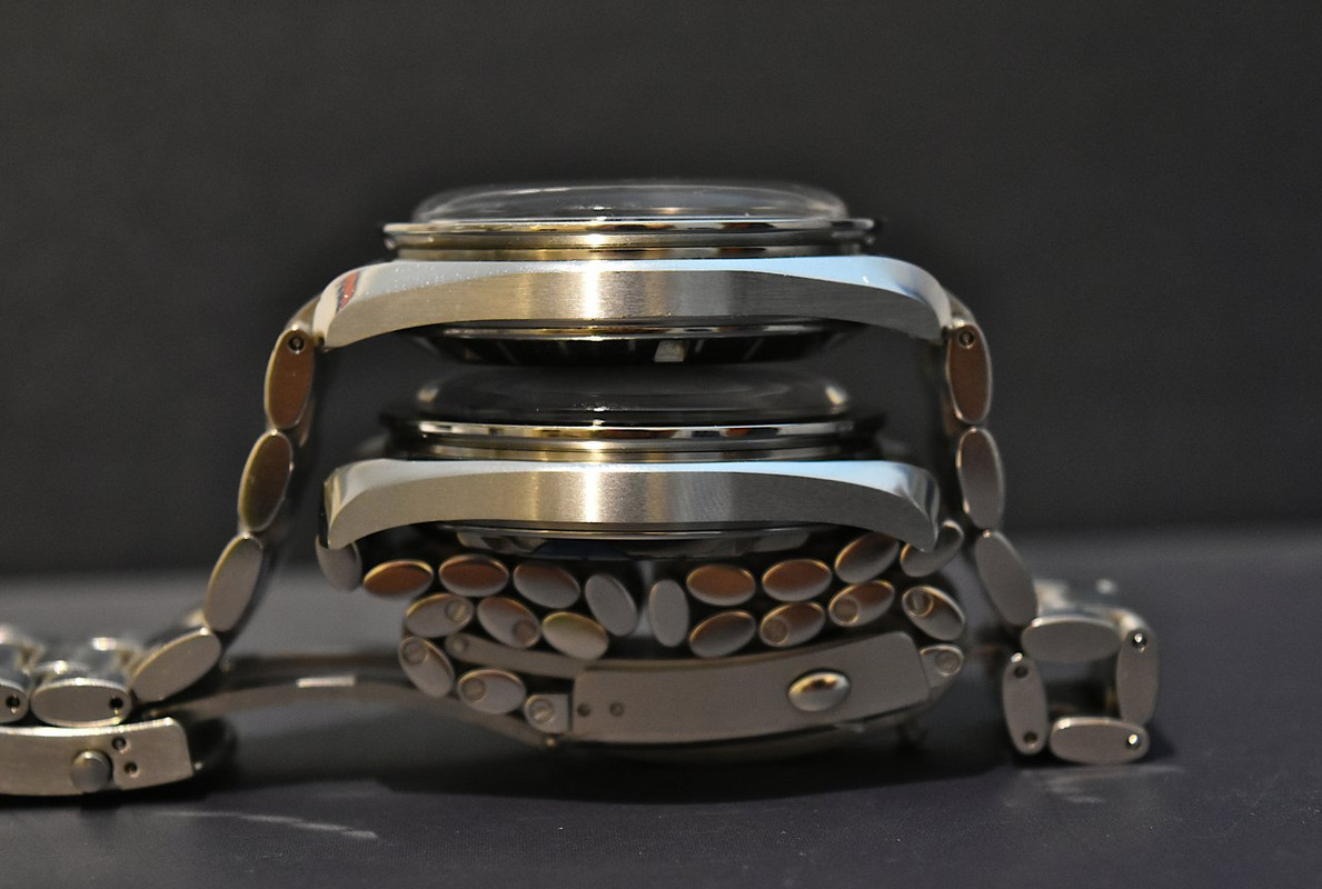 Αν υπήρχε ένα παράπονο στο προηγούμενο μοντέλο αυτό ήταν το μπρασελέ. Και πιο συγκεκριμένα τα end links του. Το μεσαίο κομμάτι τους ήταν σταθερό και εξείχε τόσο πολύ που μεγάλωνε το lug to lug του ρολογιού, κάνοντας το να φοριέται πολύ μεγαλύτερο από ότι οι διαστάσεις του μαρτυρούσαν. Δηλαδή 42mm διάμετρο με "θεωρητικό" lug to lug 48mm. Παρατηρώντας τις συγκριτικές φωτογραφίες καταλαβαίνει κάποιος πόσο μεγαλύτερο ήταν το πραγματικό του lug to lug λόγω του συγκεκριμένου μπρασελέ.