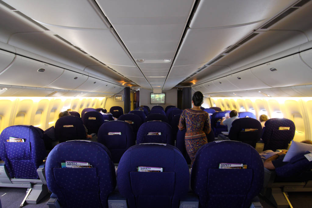 Triple seven (standard, όχι W), regional SQ J class configuration, SIN-DXB leg, early 2009.