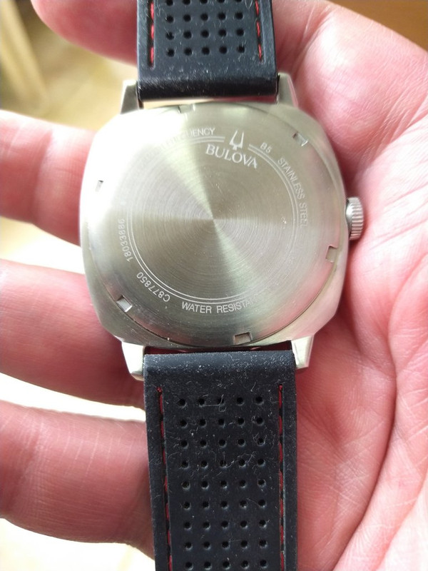 Κάσα τετράγωνη cushion βουρτσισμένη με μια μικρή επιφάνεια στο πλάι γυαλισμένη.Η κορώνα έχει το λογότυπο της Bulova στο πλάι και έχει πολύ ωραία σφικτή αίσθηση ενώ είναι και βιδωτή οπότε δίνει και μια αίσθηση εμπιστοσύνης για το WR100.