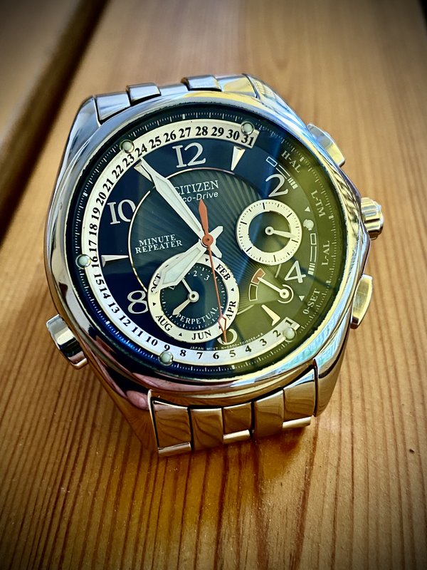Εκεί κάπου ,μεταξύ φαντασιωσης και ρεαλισμού χώθηκε και η Citizen,με μια δωση χιούμορ και ειρωνίας πιστεύω, για να παρουσιάσει το module G900 πριν καμία 20ετια…Εκτός βέβαια από τα παραπάνω η citizen έκανε  επίδειξη τεχνολογίας και δυνατοτήτων εφοδιάζοντας ένα οικονομικό ρολοι με minute repeater,perpetual calendar και eco drive .Η αισθητική του συγκεκριμένου ρολογιού μπορεί να είναι λίγο εκκεντρική η επιδεικτική η ποιότητα όμως κατασκευής είναι υπεράνω κάθε κριτικής τόσο για το καντραν και τον μηχανισμό όσο και για το στιβαρό μπρασελέ του.