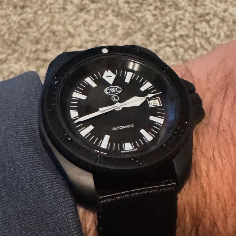 Grade 5 titanium CWC diver's case with integral fixed strap bars ETA Swiss movement. Swiss Made, 300 mtr, water resistant. GMT bezel Deep etched TGN caseback TGN dial and hands