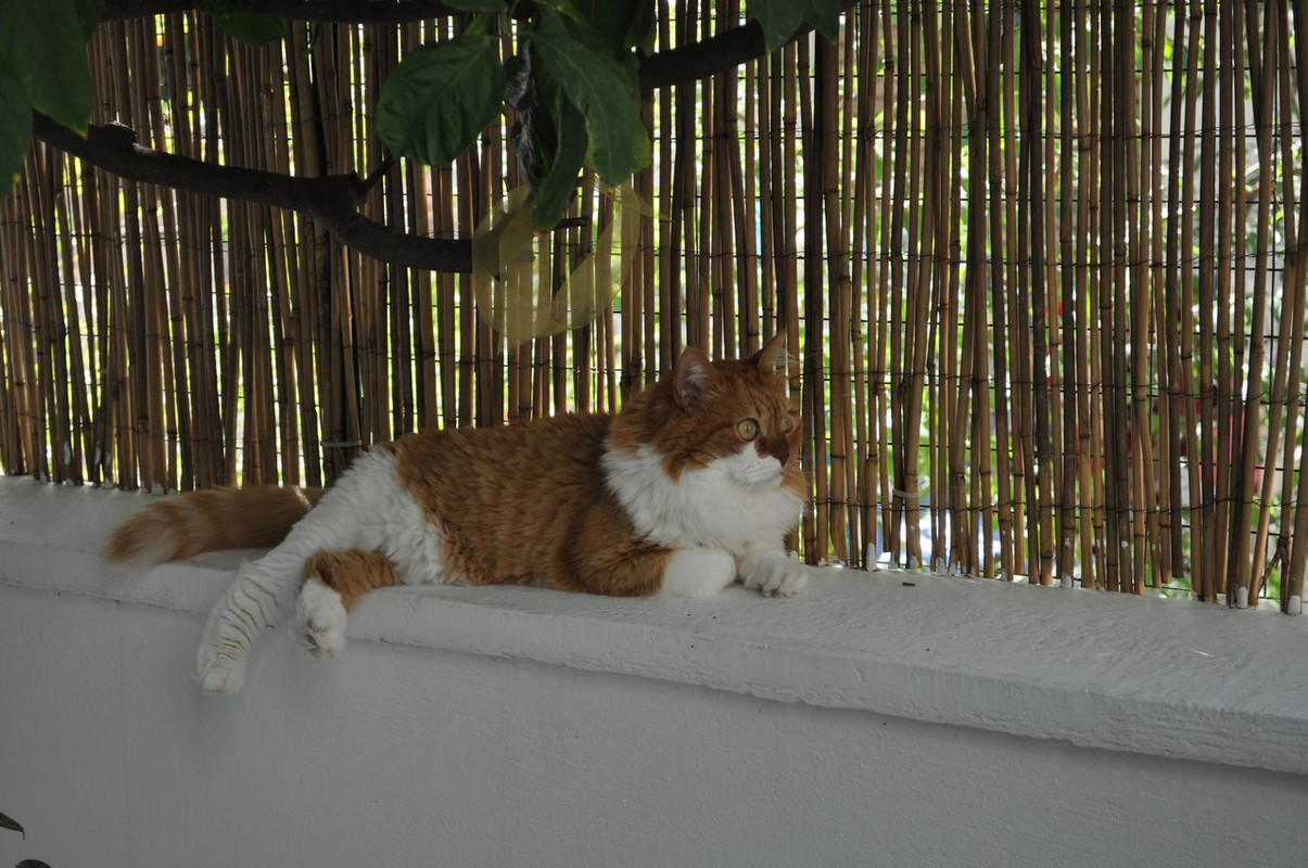 Εδώ παρέα με τα γατάκια της αυλής..Δεν τα πολυγουσταρει αλλά τα ανέχεται..