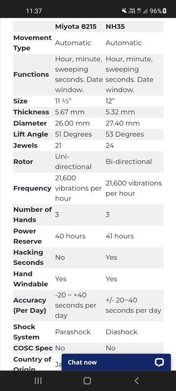 Πιστεύω ότι κανείς λογικός άνθρωπος δε θα διάλεγε τη nh35 για την ακρίβεια της, τη διαλέγουν για την αξιοπιστία της σε σχέση με την τιμή της πάντα, αυτό λέει εδώ και στην πράξη είναι η στάνταρ επιλογή των micros οπότε κάτι σημαίνει αυτό ...