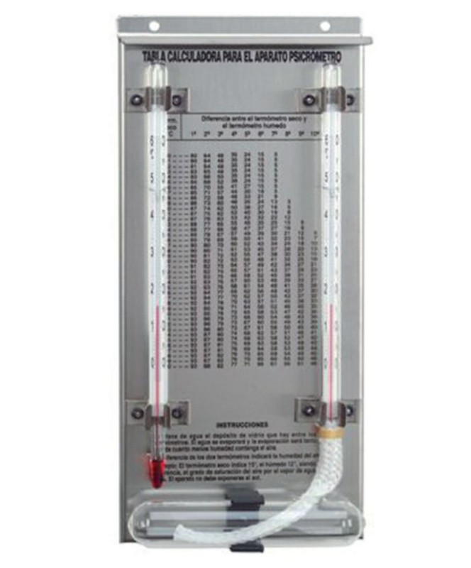 Από ειδικούς πίνακες, ξέροντας τη θερμοκρασία του υγρού θερμομέτρου και τη διαφορά θερμοκρασίας μεταξύ του ξηρού και του υγρού θερμομέτρου, μπορούμε να υπολογίσουμε την υγρασία της ατμόσφαιρας.