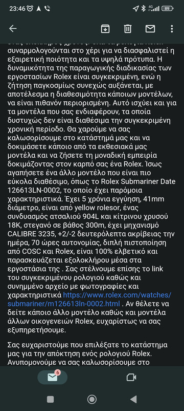 Σημερινη απαντηση σε μειλ μου σε ad για submariner date ή no date.