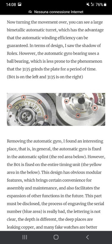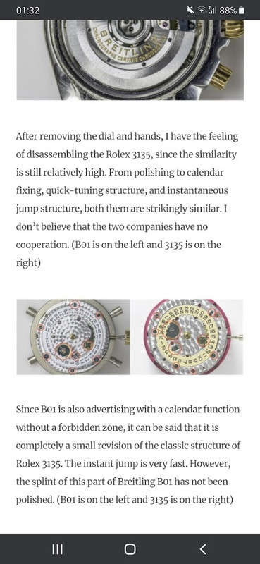 Since B01 is also advertising with a calendar function without a forbidden zone, it can be said that it is completely a small revision of the classic structure of Rolex 3135. The instant jump is very fast. However, the splint of this part of Breitling B01 has not been polished. (B01 is on the left and 3135 is on the right)