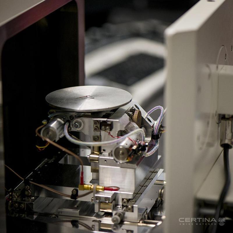 The in-depth analysis of various Certina watch components is possible using a scanning electron microscope. This allows Certina experts to get a close-up look at the layers of materials used in each piece