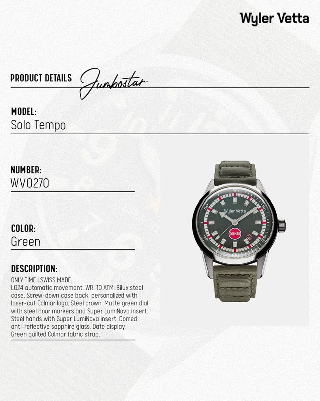 the Jumbostar Solo Tempo 41mm in collaboration with @colmar