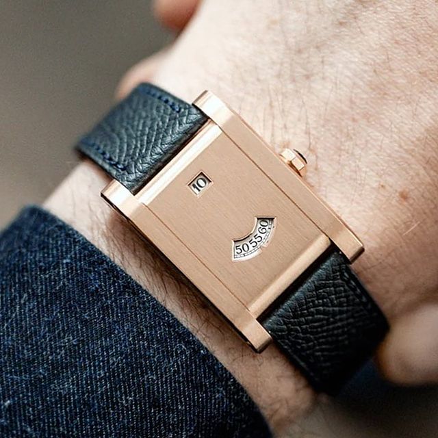 Now here's a most intriguing piece: the Cartier Tank à Guichets. Part of the Collection Privé Cartier Paris, it features a closed-off dial with a digital display and jumping hours. Limited to a series of 100 pieces