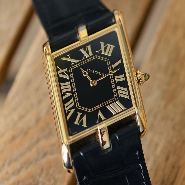 This special order watch features an inky black lacquered dial, yellow gold apple-shaped hands and the chemin de fer. The raised matte-metallic gilt Roman numerals are a highlight that provides the best of both worlds between legibility and depth. The surface of the indices is also treated in a way such that they emanate a slight iridescent shimmer that never fails to make me swoon. Of course, the perfect finishing detail is the olive-toned green sapphire cabochon. Not only are green cabochons uncommon for Cartier watches, but the pairing of green and yellow gold is also a handsome combination that rarely fails. A regal addition to my Cartier collection to celebrate my birthday and accompany me through next year and those to come