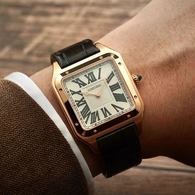 It’s a new dawn for the Santos-Dumont, now reinterpreted in rose gold. Cut directly in jade and adorned with a jade crown, the Roman numerals of its dial are enhanced by the depth and rays of a refined guilloché effect